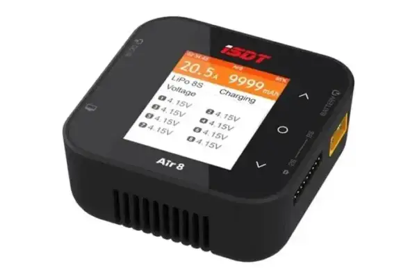 When I first started getting into 8S drones, I looked around for the lowest-priced 8S charger that I felt I could actually trust. This was it. The ISDT Air8 has specs. But that doesn’t really matter. Because you just want something — anything — that will charge your 8S battery at a reasonable rate and for a reasonable price. Ok … the specs matter a little. 500 Watts and 20 Amps. Are you happy? That’s actually pretty decent. You can charge up to a 14,800 mAh 8S battery at 1C!